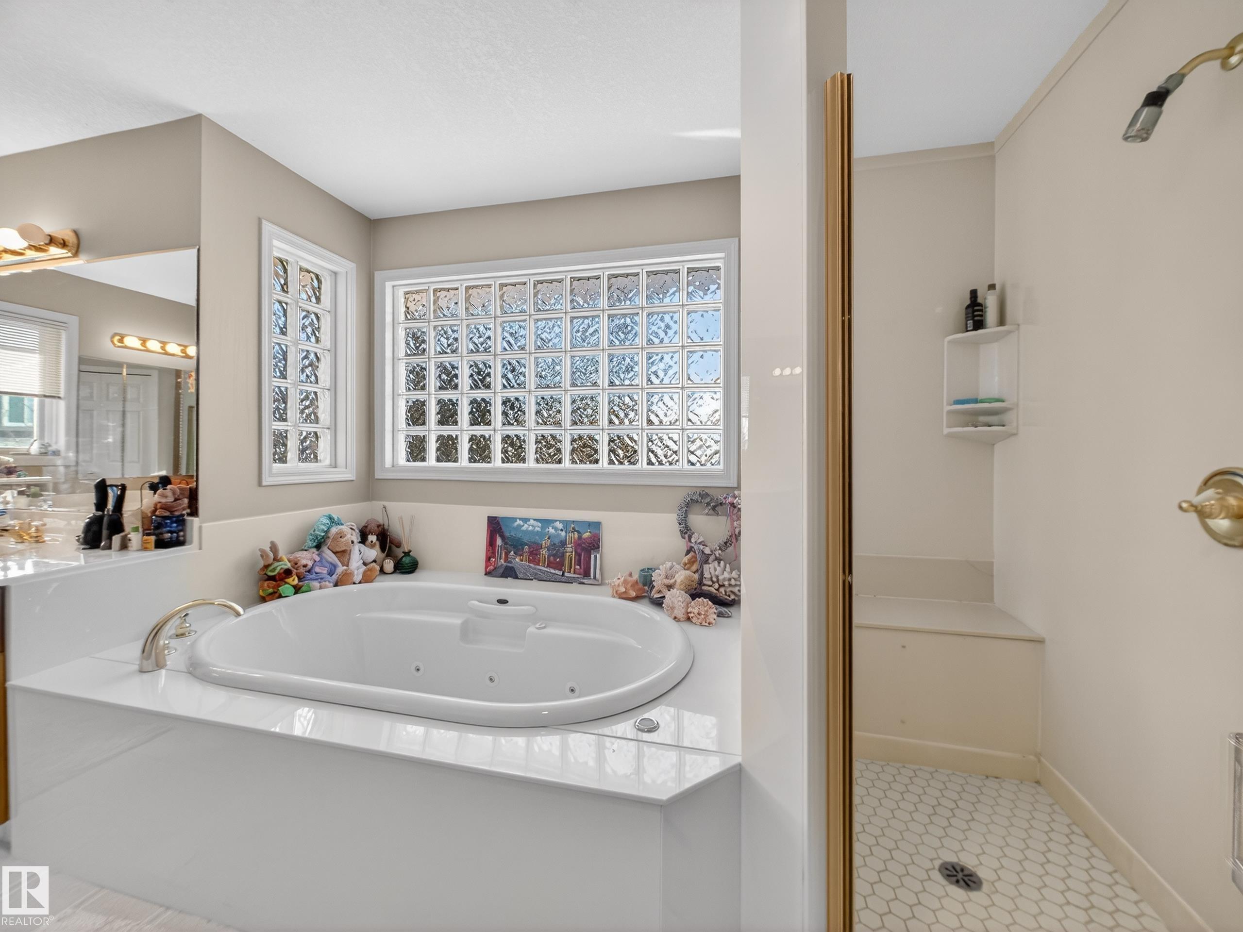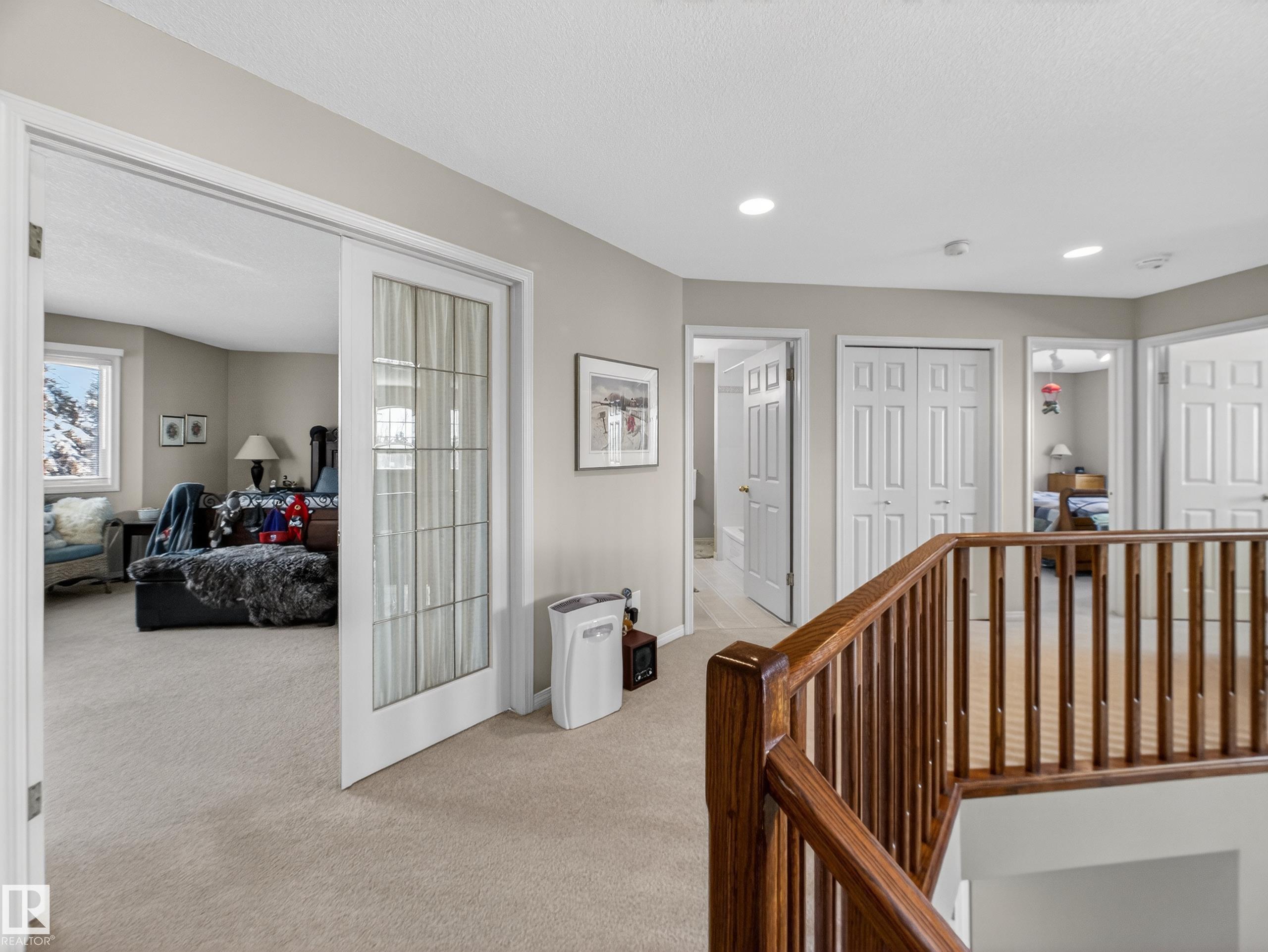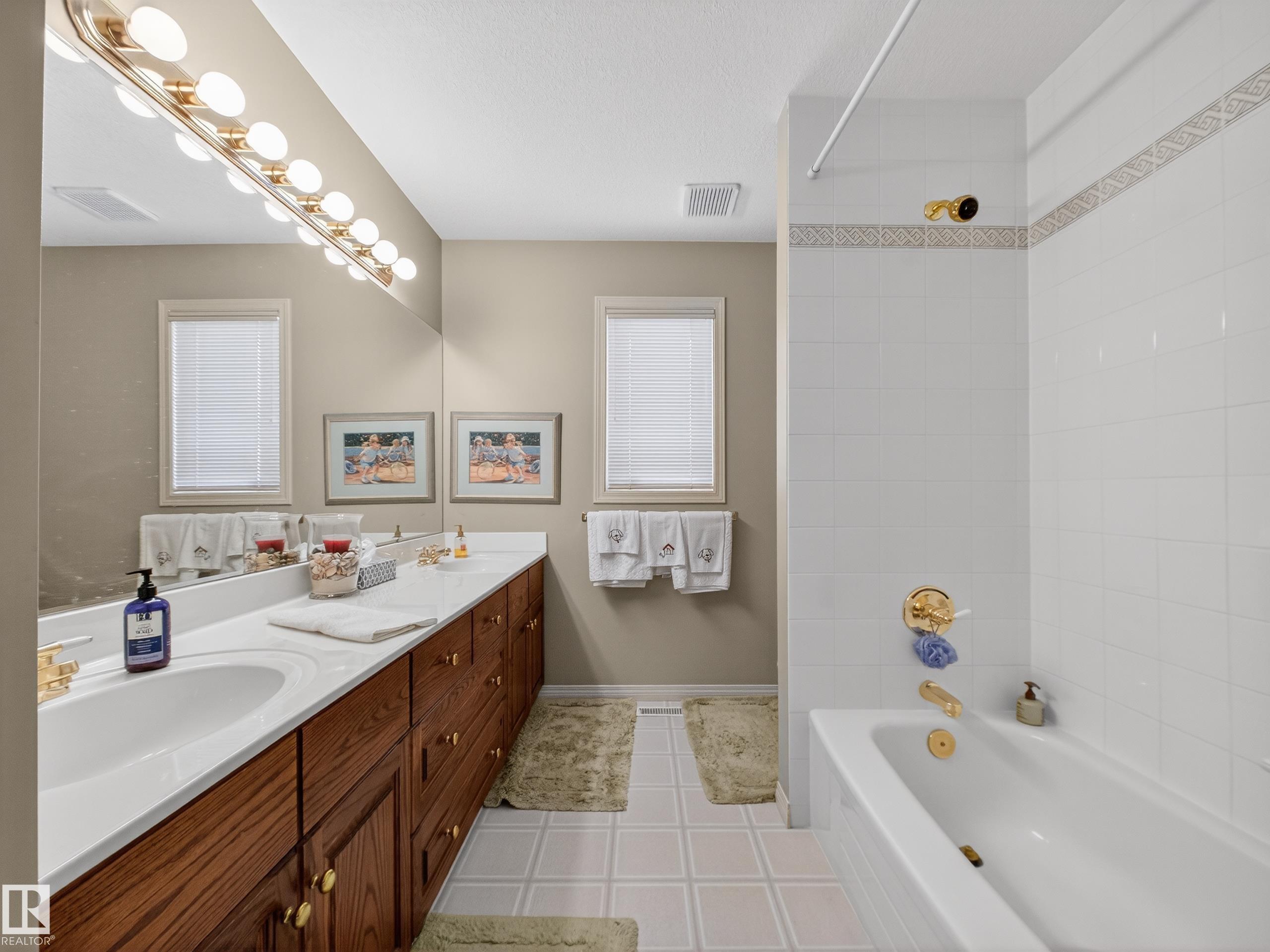 SOUGHT AFTER TWIN BROOKS!....OVER 2800 SQ FT...GREAT LAYOUT HOME!...GORGEOUS, PRIVATE BACKYARD/MATURE TREES...SPA ENSUITE...FULLY FINISHED BASEMENT...~!WELCOME HOME!~ Walk into a grand foyer w/spiral staircase. Front living area w/vaulted ceilings adjacent to dining room - perfect for entertaining! Lots of wood cabinetry, large island, stone countertops, tall pantry & breakfast nook. OPEN CONCEPT to family room has a cozy wood burning FP. Completing the main floor is a den, 2pc bath, & MASSIVE MUDROOM/LAUNDRY RM w/cabinetry, counters & sink! The second level offers 3 bdrms, 4 pce bath and a huge primary retreat, w/spa ensute that w/double sinks, makeup desk, jacuzzi tub/separate shower, & walk-in closet - WOW! FULLY FINISHED BSMT boasts a rec room w/wood burning FP, 2 more bdrms & 3pc bath. Enjoy the AMAZING BACKYARD and trees, & a huge partly covered deck and shed. NEW HWT 2025, TWO NEW FURNACES 2024, NEW SHINGLES 8 YRS AGO. Steps to the ravine, parks, schools, Anthony Henday & LRT.