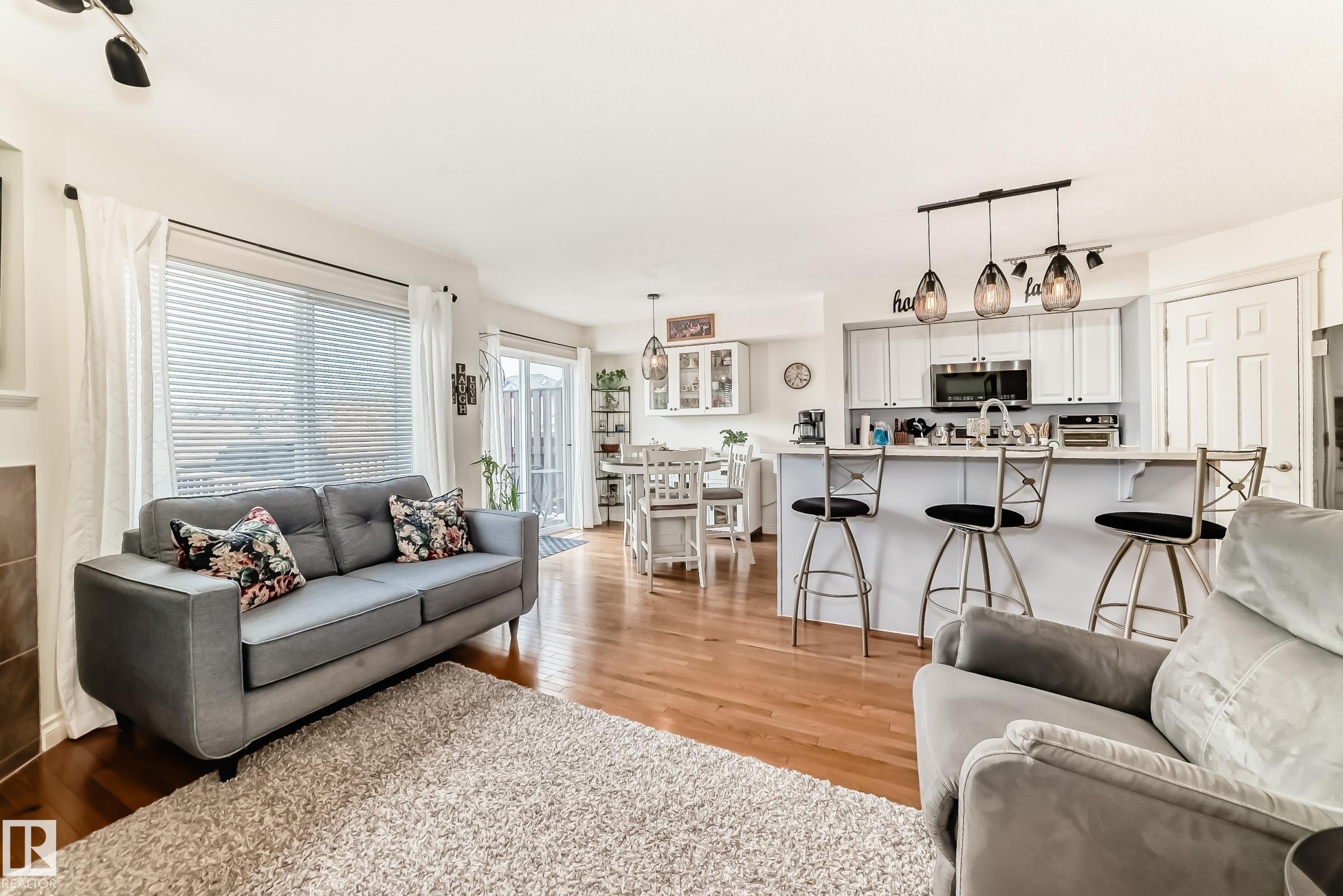 RARE FIND! Dual master suites, one of few in Spruce Grove. Renovated Harvest Ridge half duplex on a quiet cul-de-sac close to schools, parks & the trail system. A large concrete covered porch welcomes you. Inside the main level features an open concept floor plan with a corner gas fireplace, hardwood flooring, an island kitchen with quartz countertops (vanity tops too), modern lighting, professional paint & newer appliances. Upstairs features 2 master suites, both with full ensuites, one offering a standup shower with bench seat & the other boasts a tub/shower combo. The basement is partially finished with a spacious family room, roughin plumbing in the future bathroom, the mechanical room & plenty of storage. Top it off with the single attached garage, a long driveway to accommodate a full-size vehicle plus an extra parking area to the side & the massive fenced backyard complete with a large storage shed with power. Revenue potential or mortgage helper with two master bedrooms. Come see for yourself!